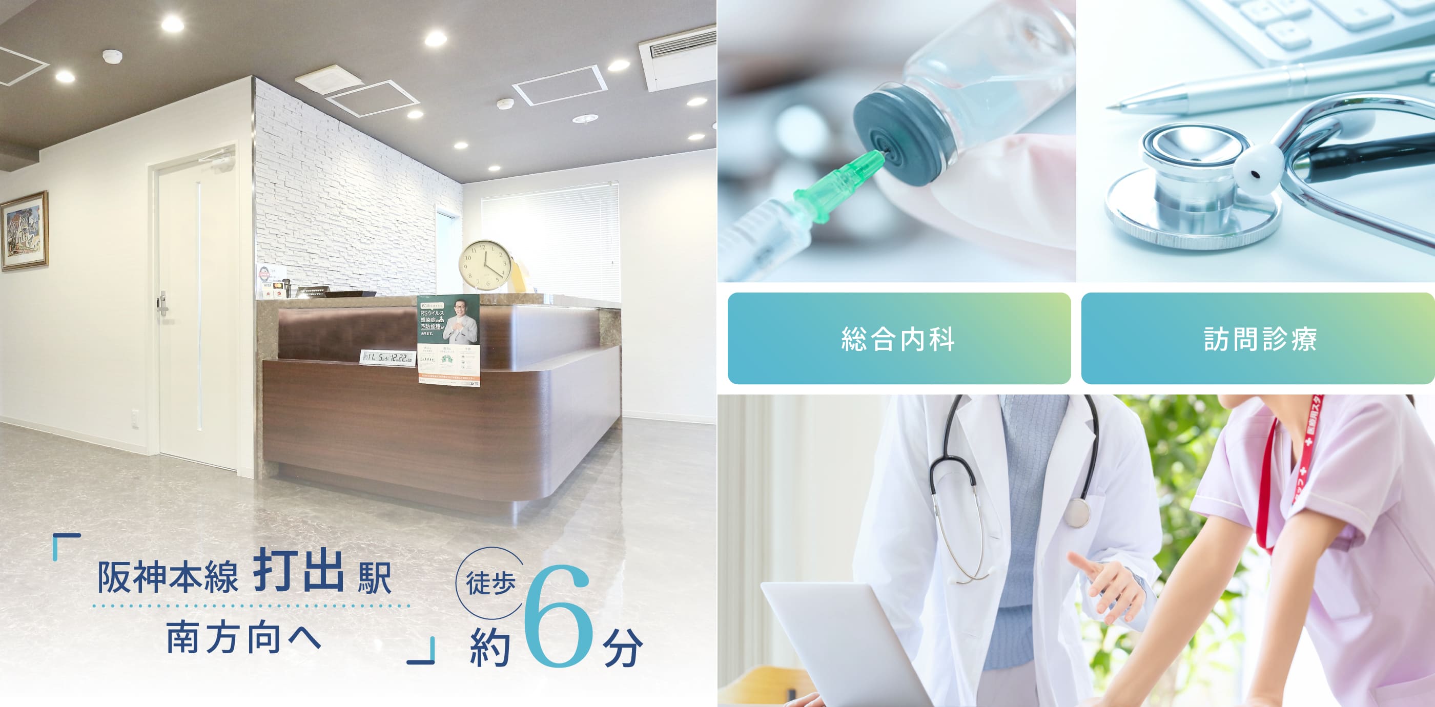 当院は阪神本線『打出』駅から南東方向へ徒歩約6分の場所にあり、近隣にスーパーマーケットもあるため、お買い物ついでに立ち寄っていただける便利な環境です。